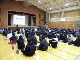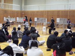 3月6日(金)の3時間目に2年生に向けた選挙出前授業が行われました。岡谷市選挙管理委員会、諏訪地域振興局から4名の方がいらっしゃいました。