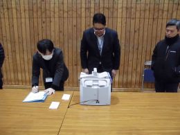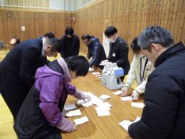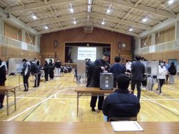 出前授業の中には、実際に岡谷市の選挙で使われいる投票箱や記載台、同じ素材で作られた模擬選挙用の投票用紙を使い、模擬長野県知事選挙が行われました。 選挙権が与えられる18歳を目前にした2年生は、選挙の仕組みや1票の重みを感じるなど選挙について考えさせられる1日になったのではないでしょうか。