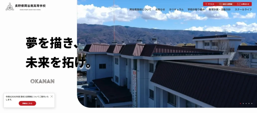 このたび、長野県岡谷南高等学校では、より迅速に情報をお届けできるよう、公式ホームページを全面リニューアルいたしました。